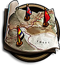 | World View—displayed as a Map—is the first icon on your Action Menu. The World View allows you to see (and engage with) the wider world in which your Town is situated. Here, you’ll find other Towns, Resource Tiles, Enemies, and more. | |